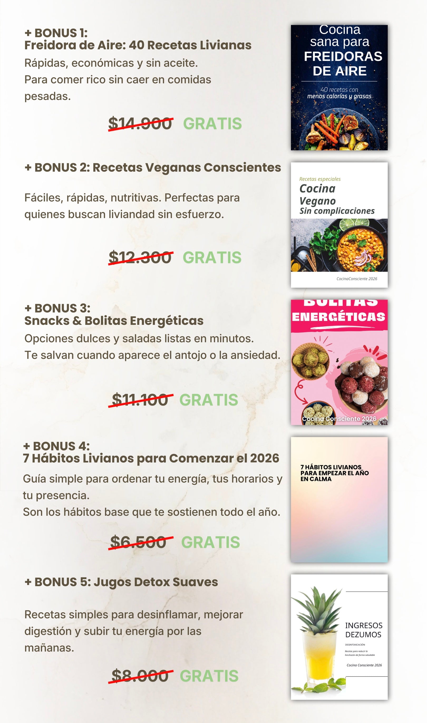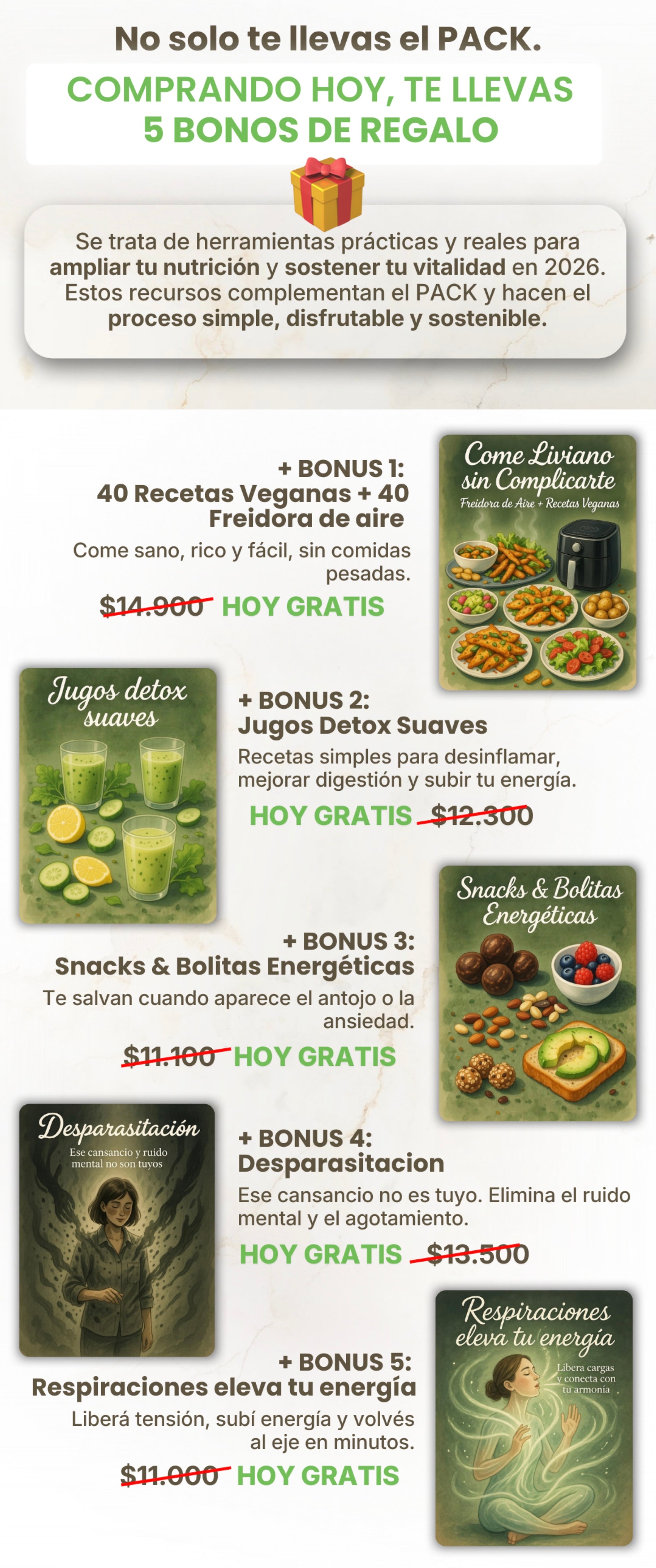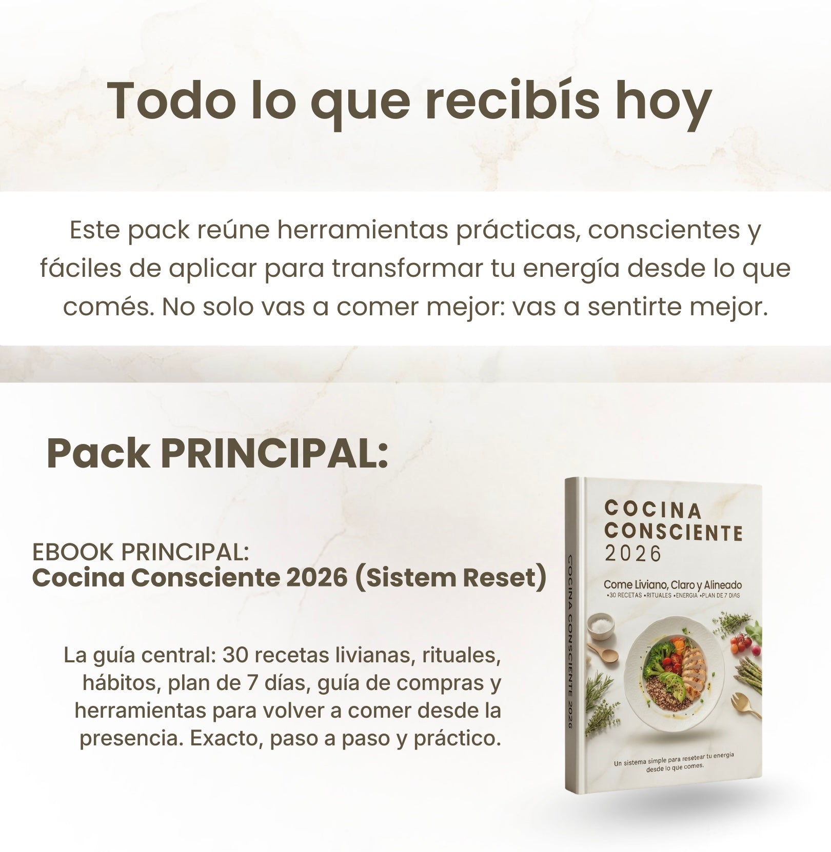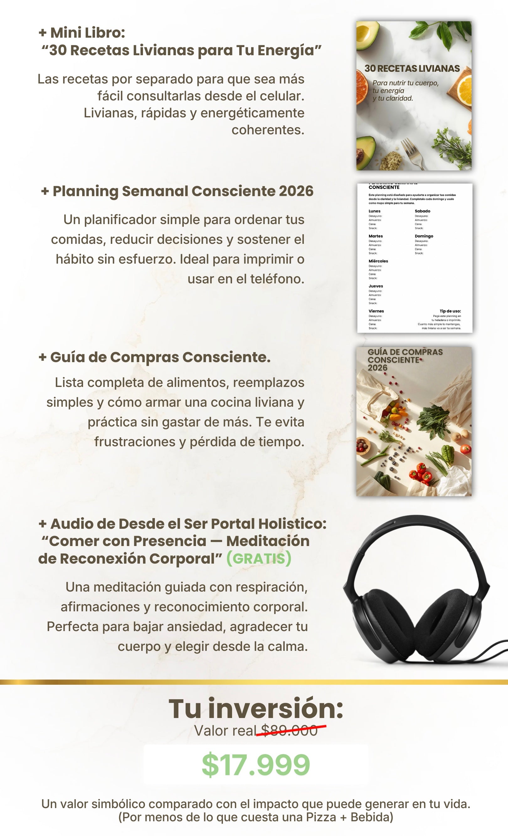 No esperaba que el pack tuviera tanto contenido. Entre el ebook, las recetas, los audios y los bonos, sentí que estaba pagando solo una parte de todo lo que recibí. Se nota el cuidado con el que está hecho. Si estás dudando, para mí vale totalmente la pena.