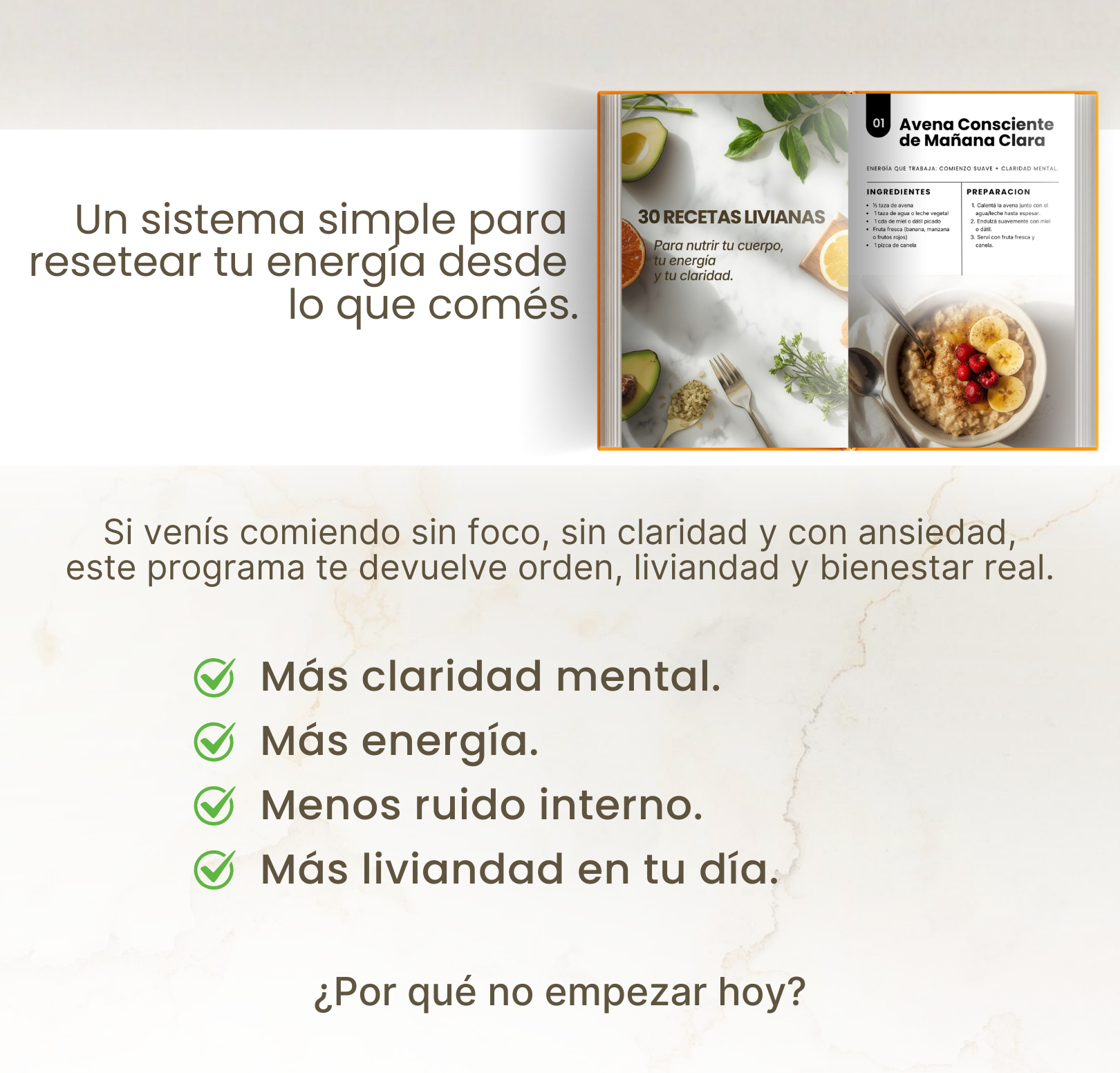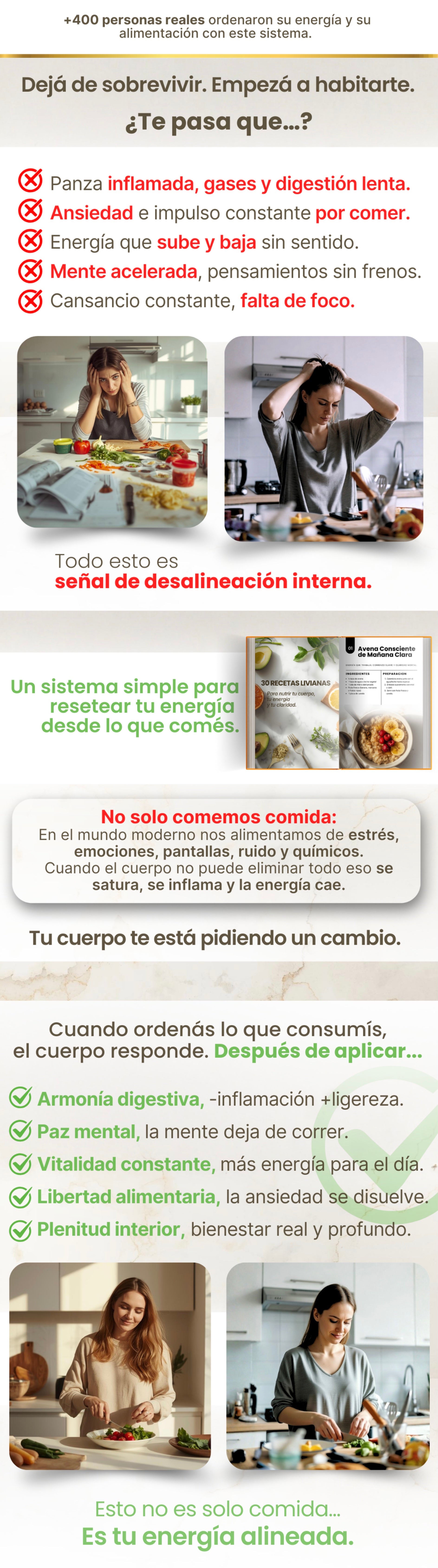 Compré el pack pensando que eran solo recetas… y terminé encontrando algo mucho más profundo. Empecé a comer con más presencia y mi energía dejó de subir y bajar todo el día. No me sentí exigida ni a dieta, fue un orden natural.