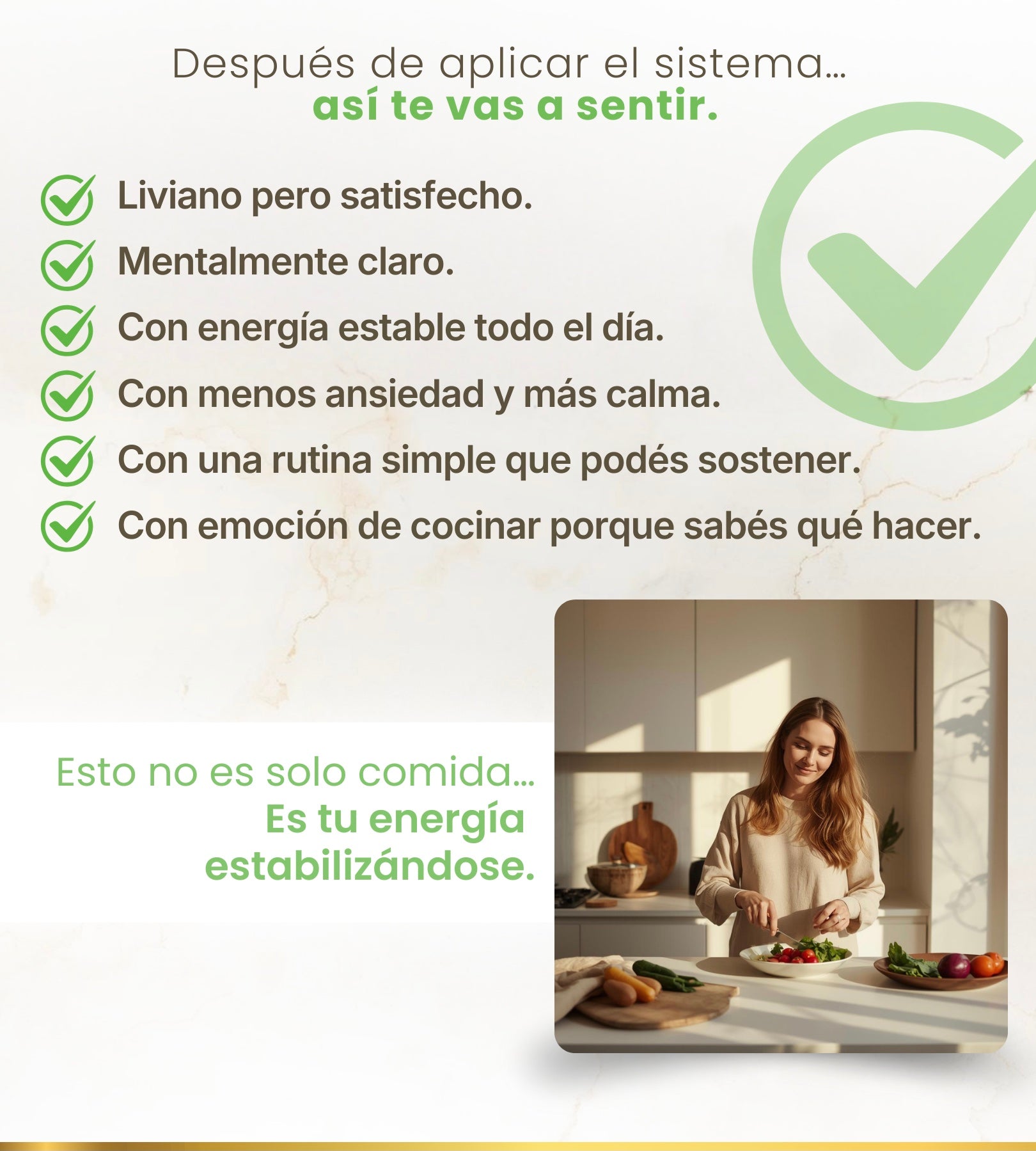 Lo que más valoro es la simpleza. No hay recetas imposibles ni reglas rígidas. Hoy sé qué cocinar sin pensarlo tanto y eso me sacó mucha ansiedad. Se siente liviano y real.